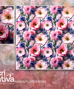 Tricoline Estampado 3D – Ramos de flores rosa